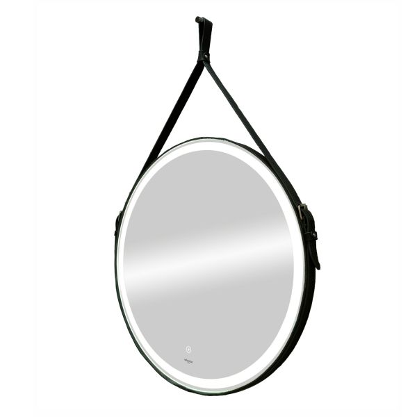 Зеркало Reflexion Skin RF5325SK с LED подсветкой сенсором на ремне из натуральной кожи черного цвета 65х65