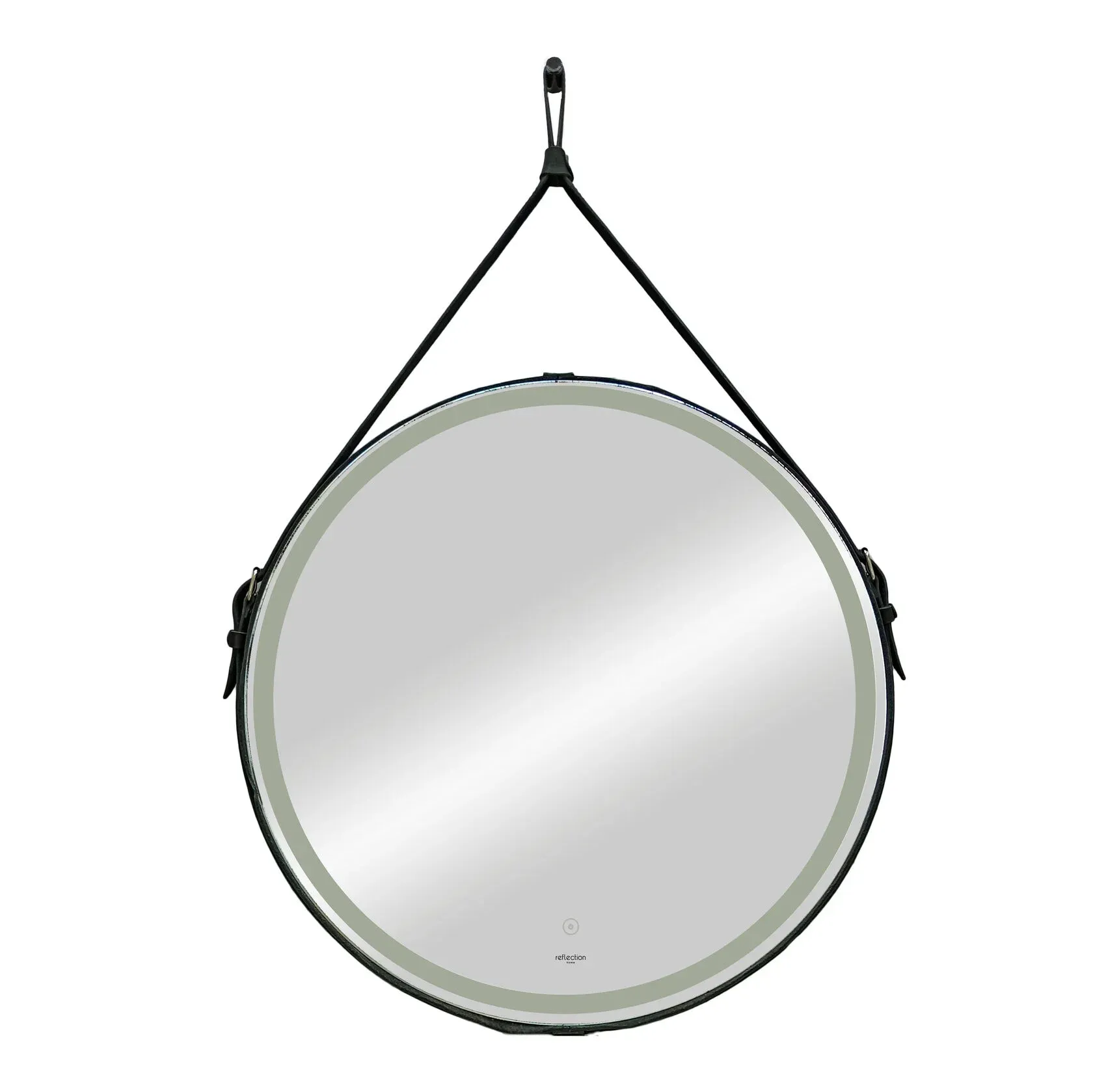 Зеркало Reflexion Skin RF5325SK с LED подсветкой сенсором на ремне из натуральной кожи черного цвета 65х65 купить