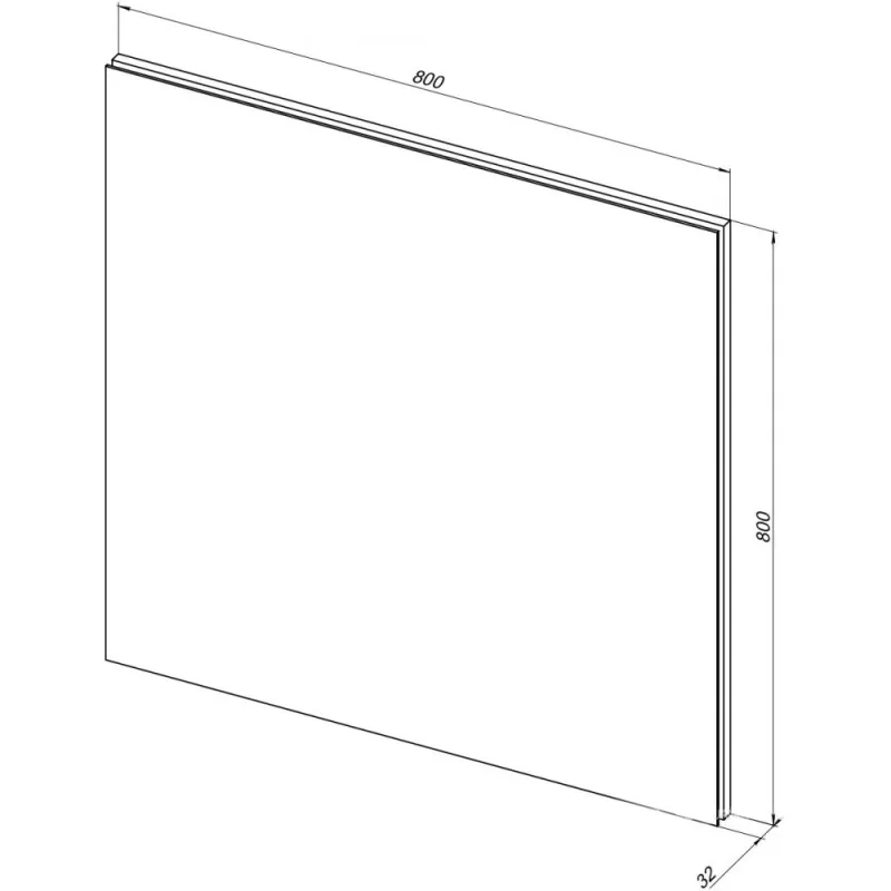 На тыльной стороне располагаются места для крепления на дюбель-крюк. Удобство эксплуатации обеспечивает встроенная по контуру светодиодная подсветка. Источником питания выступает сеть переменного тока с напряжением 220 В. Для включения и выключения используют отдельный настенный выключатель. Размеры — 800х32х800 мм.