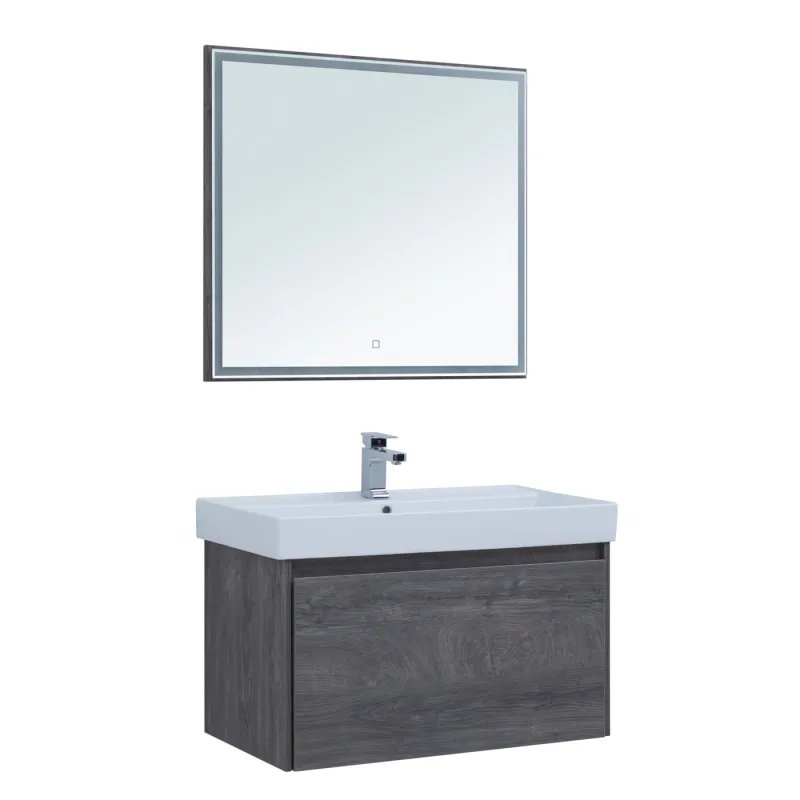 Зеркало Aquanet Nova Lite шириной 90 см отлично вписывается в комплект с тумбой из влагостойкой ламинированной древесно-стружечной плиты в благородном цвете «дуб рошелье». Фактура натурального дерева выглядит изысканно. Выполняет сразу две функции: непосредственно зеркала и осветительного прибора, благодаря LED-подсветке по периметру.