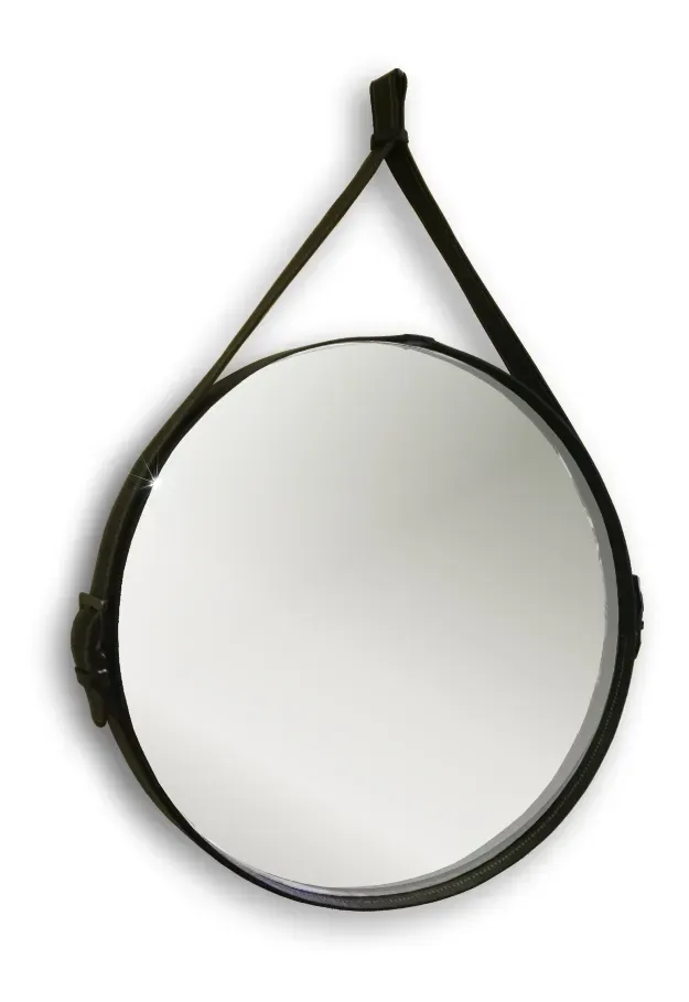 Зеркало изготовлено из зеркального полотна толщиной 4 мм. Рама зеркала выполнена из натуральной кожи. Изящная оправа придаёт зеркалу современный вид и будей гармонично дополнять интерьер.