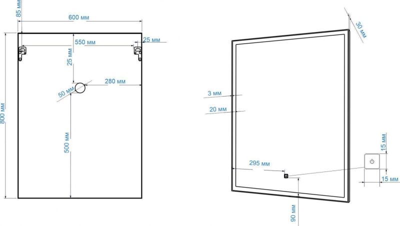 - Размер сенсорной кнопки: 15х15 мм