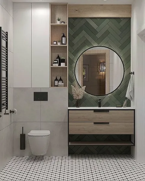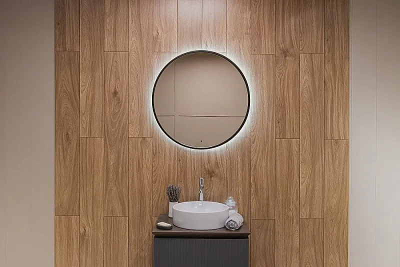 Ореольная подсветка подчеркивает форму зеркала и создает эффект парения.