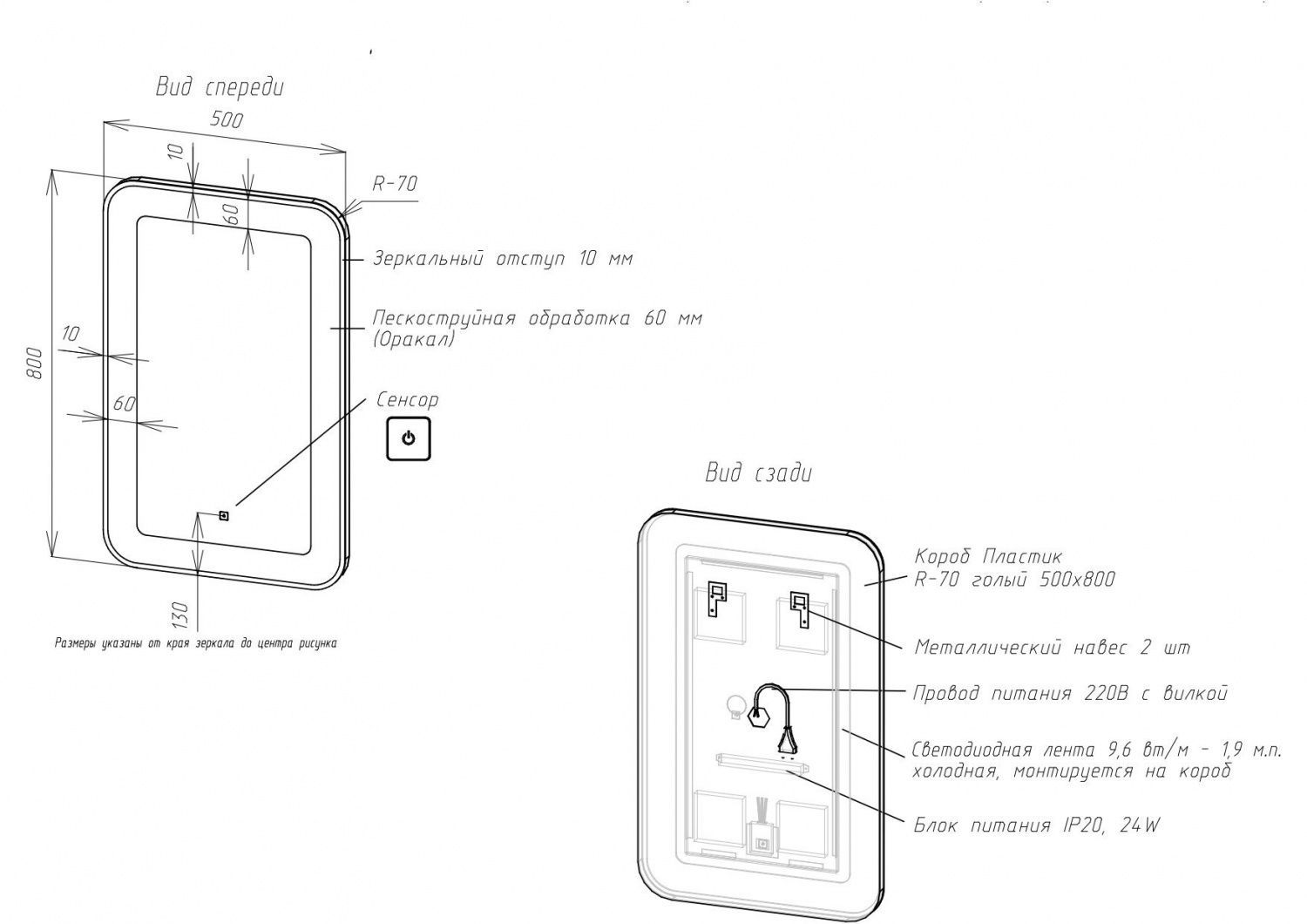 - Толщина зеркального отступа: 10 мм