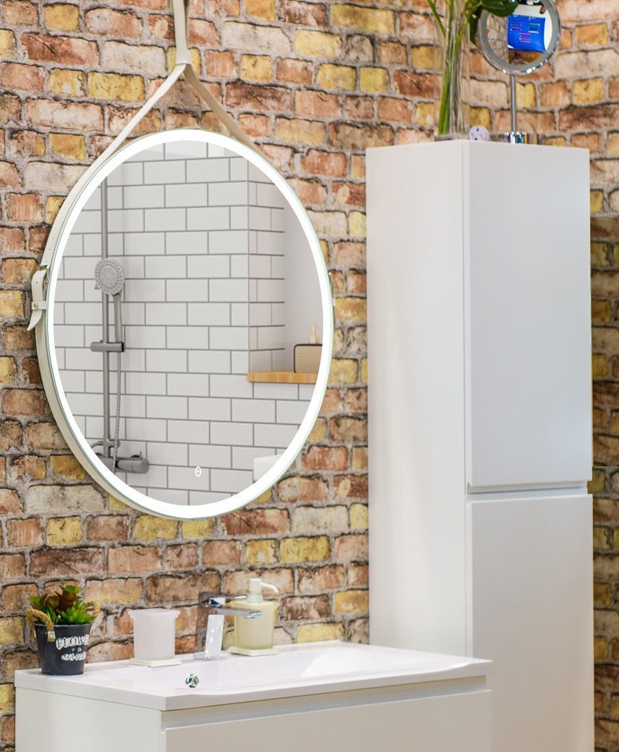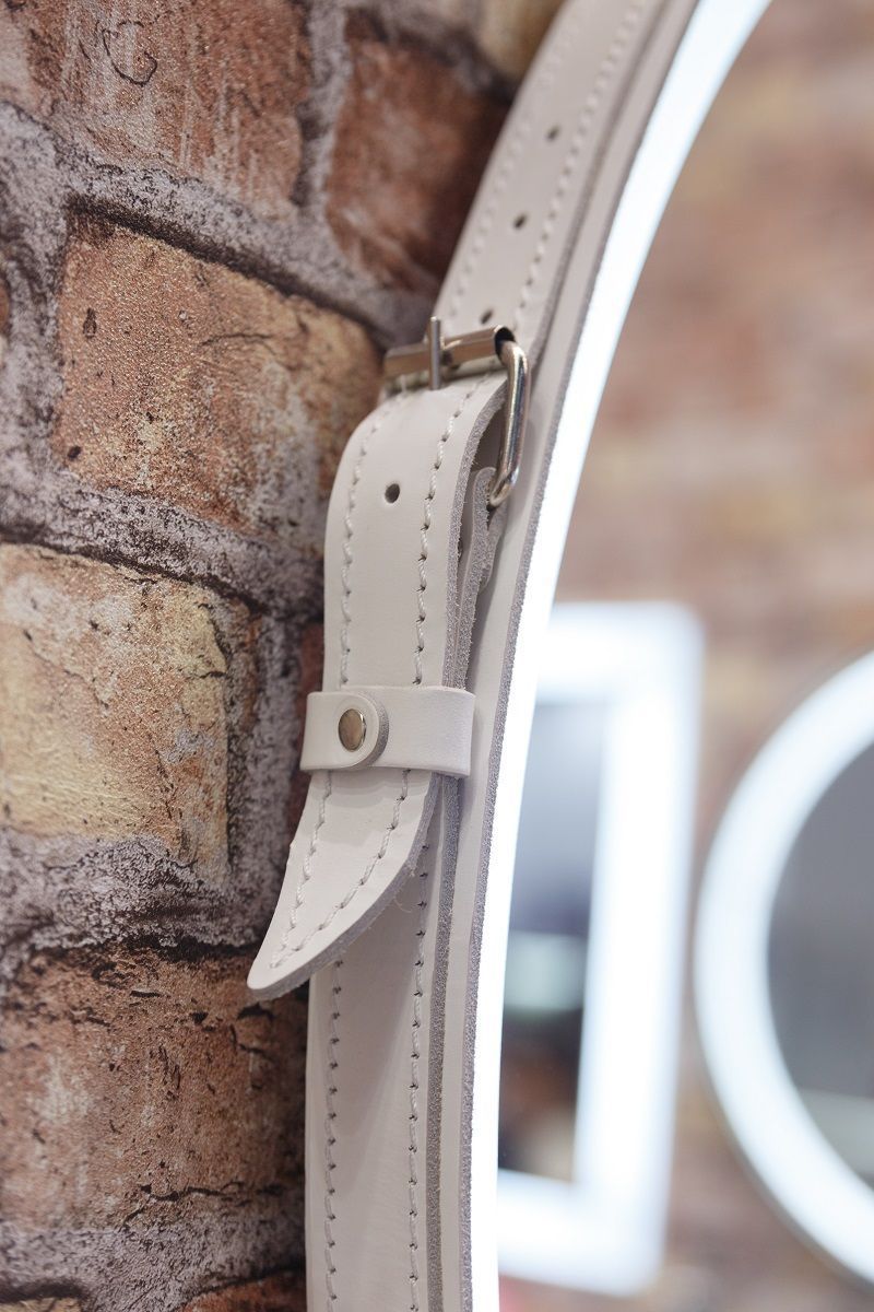 Зеркало Art&Max выполнено в современном стиле и отлично дополнит интерьер любой ванной комнаты. Благодаря подвесной конструкции модель не занимает много места, что позволяет экономить пространство в небольшой ванной комнате. Модель оснащена ремнем и встроенной светодиодной LED подсветкой с диммером. Ремень выполнен из натуральной кожи белого цвета.В комплект поставки входит крепеж и ремень.Особенности: