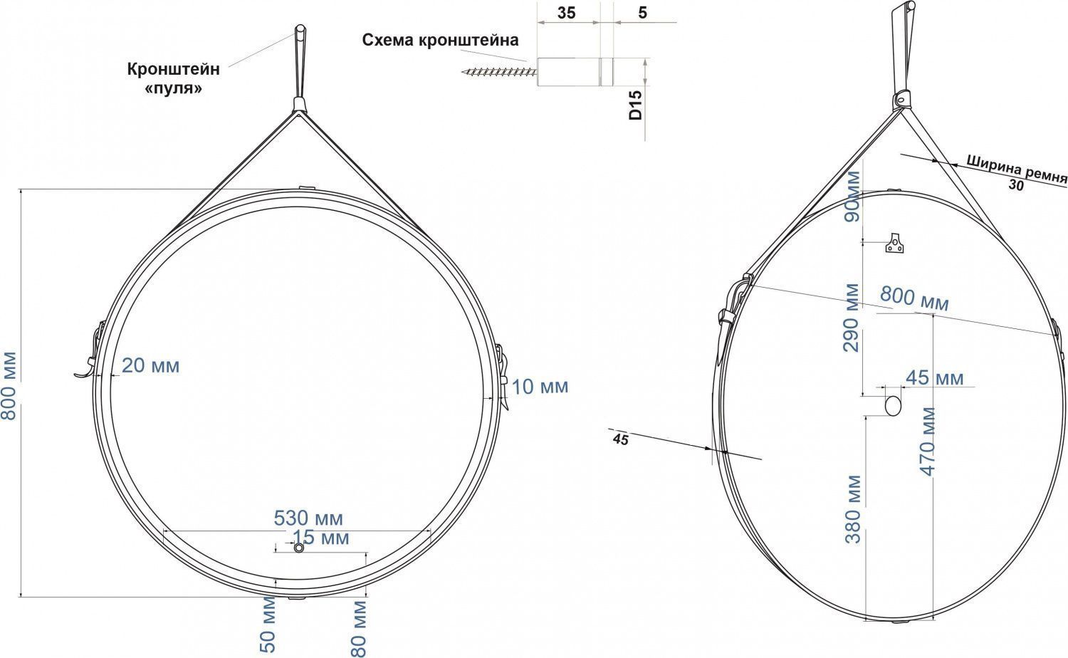 • Выступ обода за зеркальное полотно: 10 мм