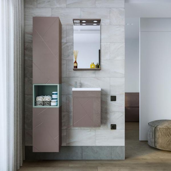 Его чистые линии и сдержанная форма создают гармоничный контраст с отделкой стен и сантехникой, добавляя комнате ощущение простоты и элегантности.