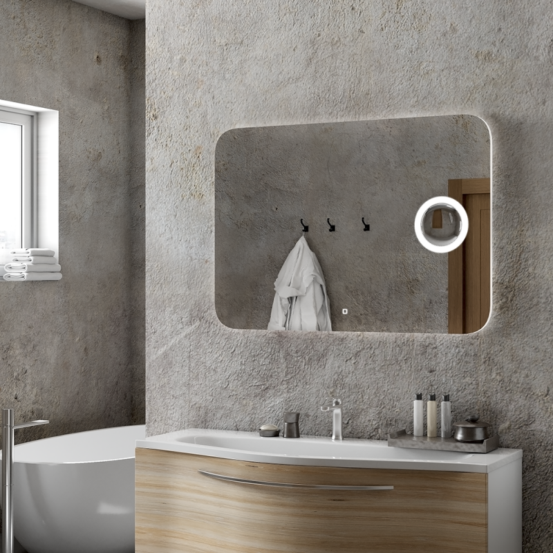 Зеркало "Elegant Led" 1200х800 с увеличительным зеркаломореольная LED подсветка 6000Ксенсорный выключатель с функцией димированиявстроенное увеличительное зеркало (линза) с 3-х кратным увеличениемдополнительная подсветка вокруг линзы