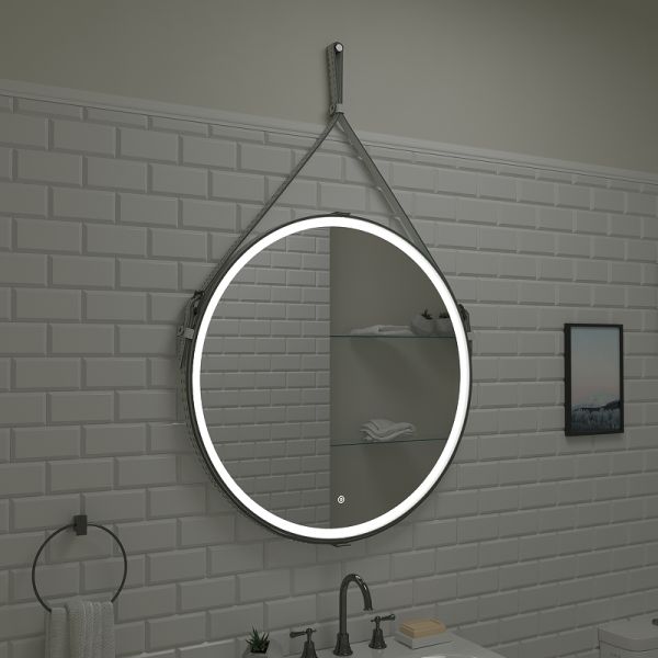 Зеркало "Millenium White Led" D 800 на ремне из натуральной кожи белого цветаLED подсветка 6000Ксенсорный выключатель с функцией димированияремень из натуркожи белого цвета