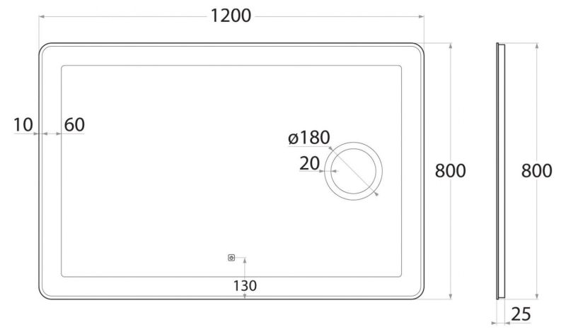 • Толщина зеркального отступа: 10 мм