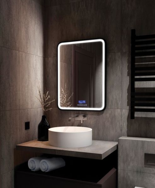 Зеркало с подсветкой и музыкальным блоком Art&Max Genova 60x80см чёрный AM-Gen-600-800-S-F-MFP