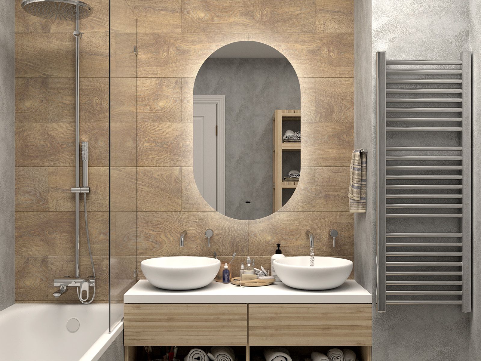 Зеркало с подсветкой для ванной комнаты — это элемент интерьера, который сочетает в себе функции, эстетику и современный дизайн. Его изящная форма и тонкие линии легко вливаются в любое пространство, создавая атмосферу утонченности и уюта.Интегрированная светодиодная подсветка обрамляет зеркало, даря мягкий, рассеянный свет, который не только позволяет удобно наносить макияж, но и наполняет ванную комнату теплом и позитивной энергией.Классический дизайн позволяет использовать его в различных стилях – от минимализма до современного эклектичного оформления. Оно прекрасно вписывается в любую цветовую гамму, будь то нейтральные тона или более яркие акценты.