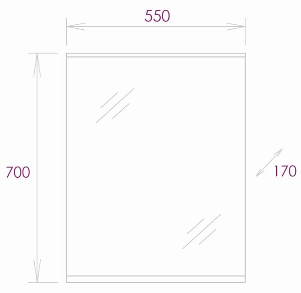 Размер зеркала 55 х 17 х 70 см.