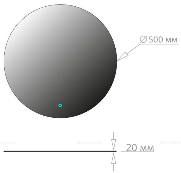 Яркость LED-подсветки регулируется при помощи встроенного диммера и сенсорной кнопки на поверхности зеркала.