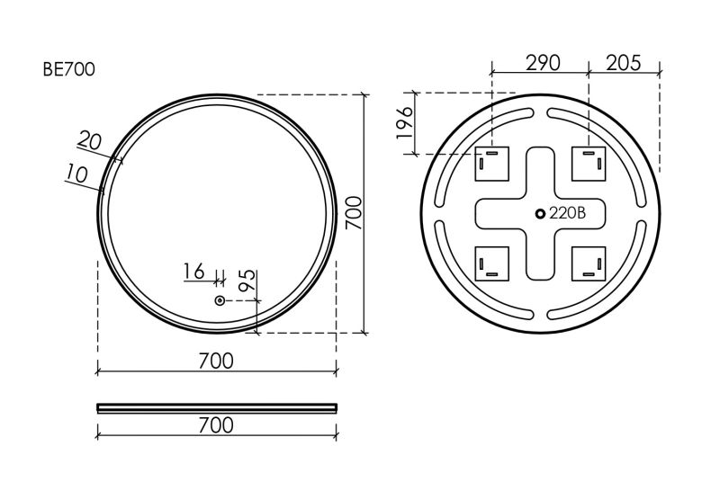 Зеркало с подсветкой Bella 700 мм Зеркало круглое с фронтальной подсветкой Температура с... Подробнее
