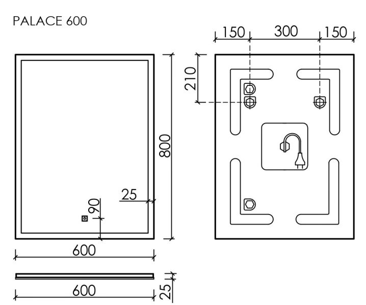 Зеркало с подсветкой Sancos Palace PA600 60см с сенсорным выключателем