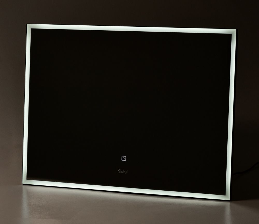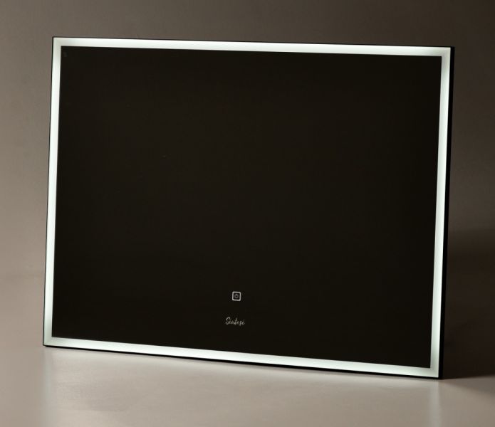 Зеркало ARMADIO BLACK 80, 800х600 с подсветкой. Алюминиевым профилем и сенсорным выключателем. Потребляемая мощность 29 W. Класс защиты IP44. Стеклянное зеркальное полотно Mirox производства компании AGC Glass Russia, принадлежащей международной группе мирового лидера по производству стекла AGC Inc. LED подсветка, алюминиевый профиль, сенсорный выключатель, блок питания, крепление зеркала (кронштейн с крюком), клеммник, сетевой шнур. Материал корпуса - Анодированный алюминий (профиль), задняя стенка пластик (АБС). Можно использовать в любом помещение: ванная и туалет, прихожая, спальня, гостиная.