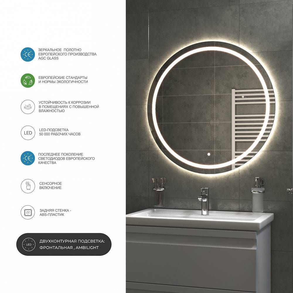 LED-зеркало: с подсветкой; с сенсорным управлением
