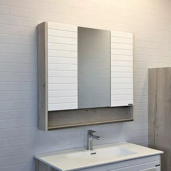 Зеркало-шкаф Comforty Клеон-90 белый/дуб дымчатый