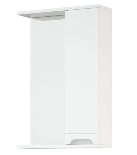 Зеркальный шкаф Corozo Лея, 50 см, белый, SD-00000240Коллекция мебели для ванных комнат "ЛЕЯ" создана для тех, кто ценит простоту форм, сочетание округлых и прямых линий, удобство эксплуатации. У мебели коллекции «ЛЕЯ» корпус выполнен из ЛДСП, фасады - из влагостойкой плиты МДФ, покрытие – пленка ПВХ. Мебель оснащена доводчиками. Зеркальный шкаф оснащен закрытой секцией и зеркальным полотном. У секции одна распашная створка, за ней две вкладные полки. Фурнитура с лицевой стороны фасадов отсутствует, вместо нее предусмотрены интегрированные ручки с декоративной полосой тонкой фрезеровки. Бесшумность и долговечность эксплуатации обеспечивают надёжные системы мягкого закрывания – роликовые направляющие и петли с доводчиками.