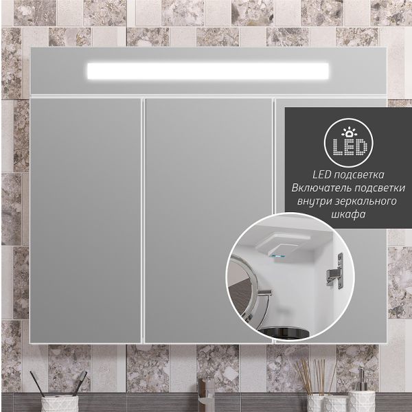 Зеркало-шкаф Opadiris Фреш 100 00-00006753 с подсветкой БелыйЦвет: белый.