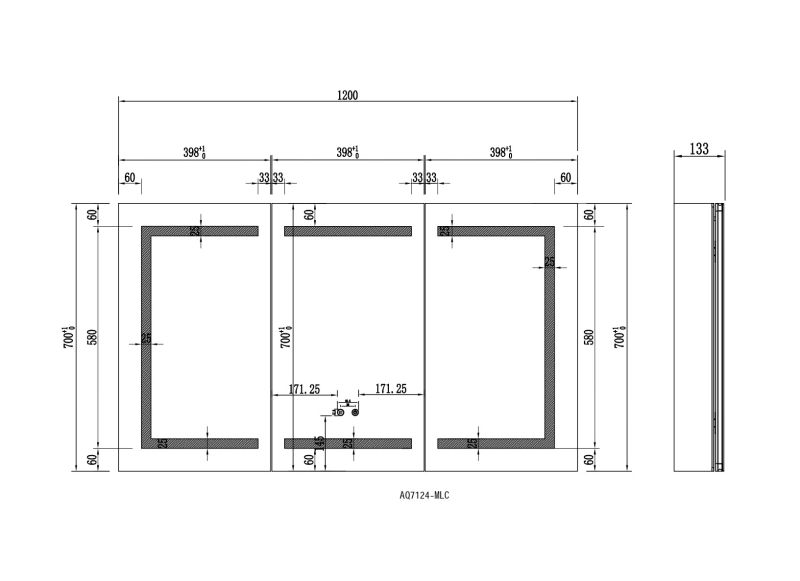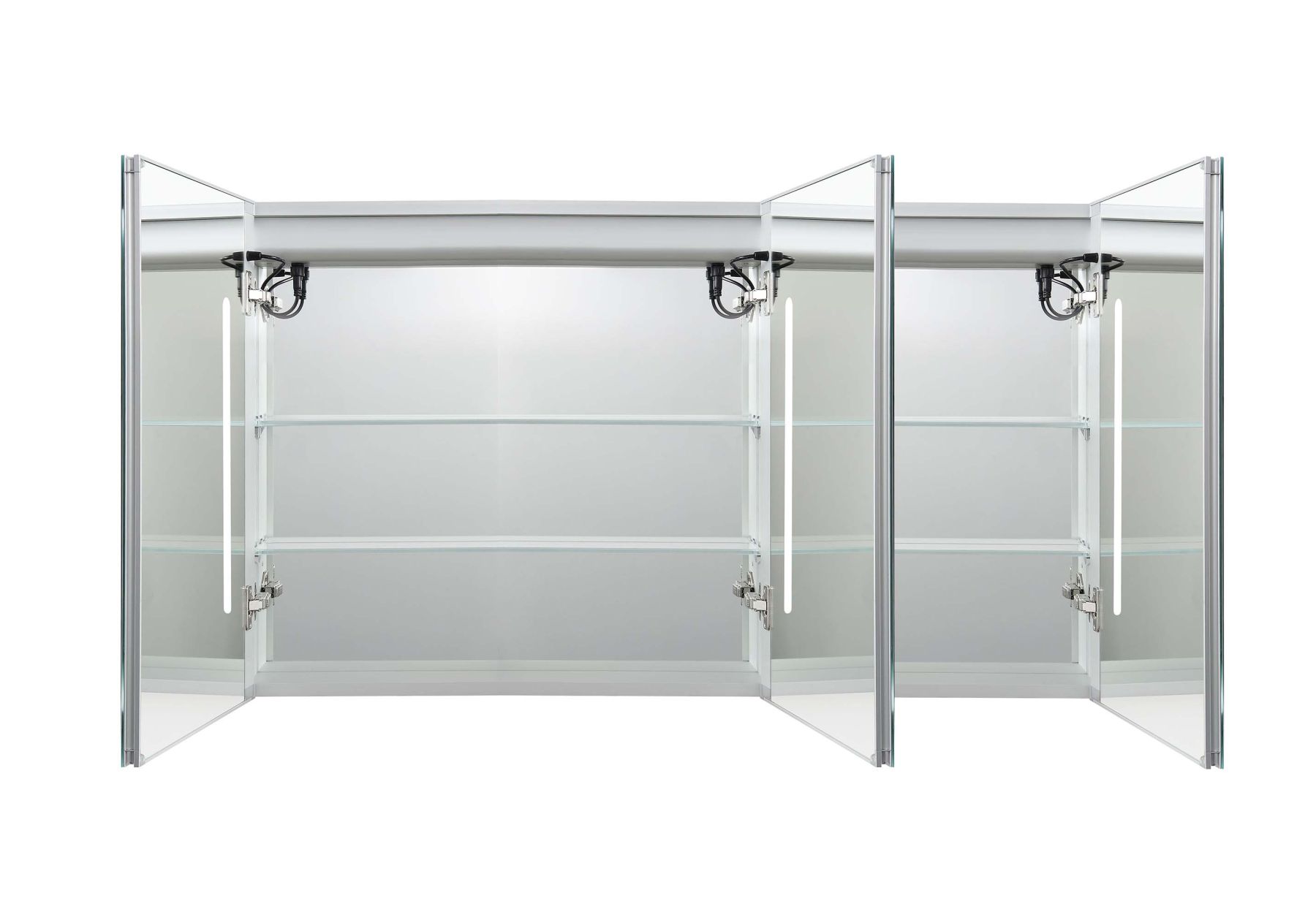 Габариты (Д В Ш), мм: 1200*700*133Алюминиевый зеркальный шкаф с подсветкойФорма: прямоугольнаяМонтаж: подвесной, монтируется на поверхность или в нишуТри зеркальные дверцы шириной 39,8см. Двусторонние зеркальные двери и зеркальные боковиныДве стеклянные полки 8 мм.Материал: алюминийЦвет: хромЗеркальный салонКруговая подсветка SMD 2835-120P, цветовая температура 2500K/6500KФункция антизапотевания2 режима переключения света/ цветаСенсорное управлениеС механизмом доводчика, обеспечивающим плавное закрываниеМебель поставляется в собранном видеДополнительное оснащение зеркала: подвесыГарантия: 1 год