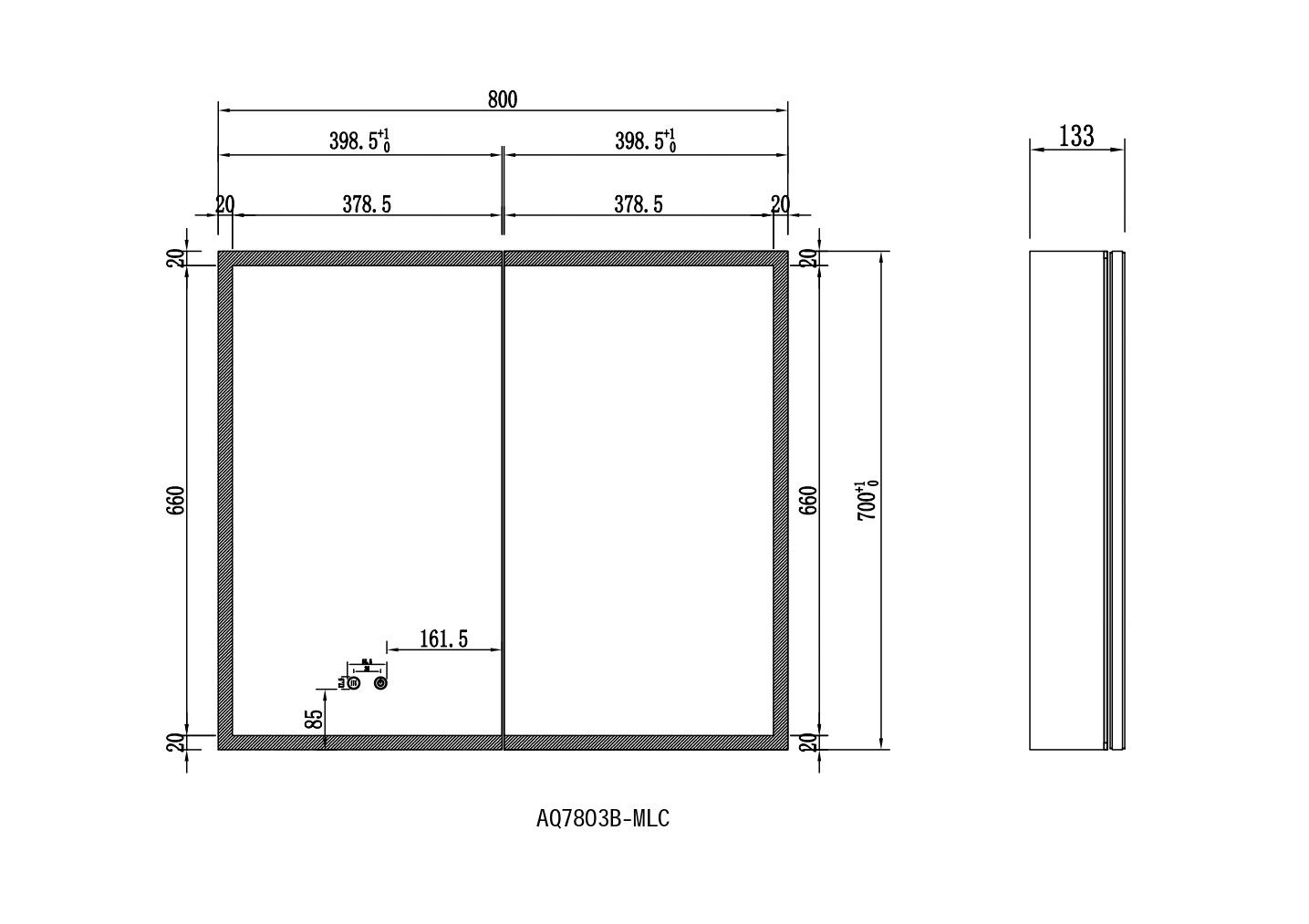 Габариты (Д В Ш), мм: 800*700*133Алюминиевый зеркальный шкаф с подсветкойФорма: прямоугольнаяМонтаж: подвесной, монтируется на поверхность или в нишуДве зеркальные дверцы шириной 39,85см. Двусторонние зеркальные двери и зеркальные боковиныДве стеклянные полки 8 мм.Материал: алюминийЦвет: хромЗеркальный салонКруговая подсветка SMD 2835-120P, цветовая температура 2500K/6500KФункция антизапотевания2 режима переключения света/ цветаСенсорное управлениеПетли BLUM, открывание 95 градусов с доводчиком, обеспечивающим плавное закрываниеМебель поставляется в собранном видеДополнительное оснащение зеркала: подвесыГарантия: 1 год
