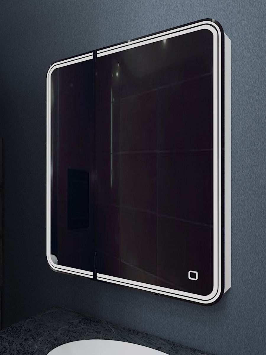 Зеркальный шкаф Art&Max выполнен в современном стиле и отлично дополнит интерьер любой ванной комнаты. Благодаря подвесной конструкции модель не занимает много места, что позволяет экономить пространство в небольшой ванной комнате. Модель оснащена двумя распашными дверцами с полочками, встроенной светодиодной LED подсветкой с диммером и сенсорным выключателем. Фасад выполнен из влагостойкой ЛДСП, каркас - из МДФ.В комплект поставки входят зеркальный шкаф, провод ШВВП белый 2*0,75 1,7м с вилкой 1м, розетка и белый навес (542/CBI) Euroorvel.Особенности: