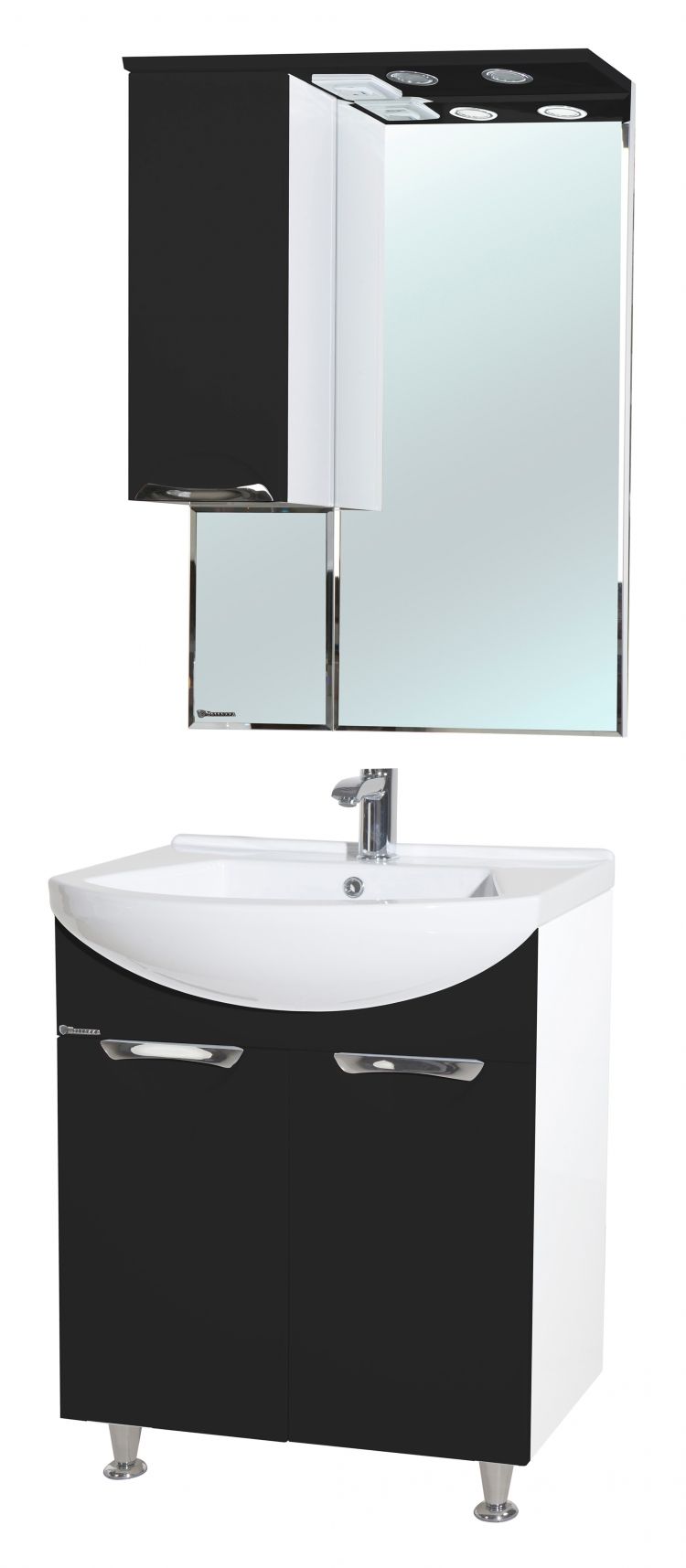 В производстве используют только качественные влагостойкие материалы (ВЛДСП), в составе которых полностью отсутствуют опасные вещества. Данная серия выполнена в эксклюзивном дизайнерском решении в лучших традициях современного стиля. Черный, основной цвет исполнения Bellezza, гармонирующий с большинством интерьерных решений. Шкаф-зеркало предусматривает удобную и вместительную систему хранения. Зеркало Bellezza оснащено галогеновой подсветкой, позволяющей комфортно провести утренние процедуры.