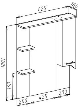 • Вместительная организация: Просторный правосторонний шкаф с продуманной внутренней компоновкой позволяет удобно разместить косметику, средства гигиены и аптечные принадлежности, сохраняя идеальный порядок.