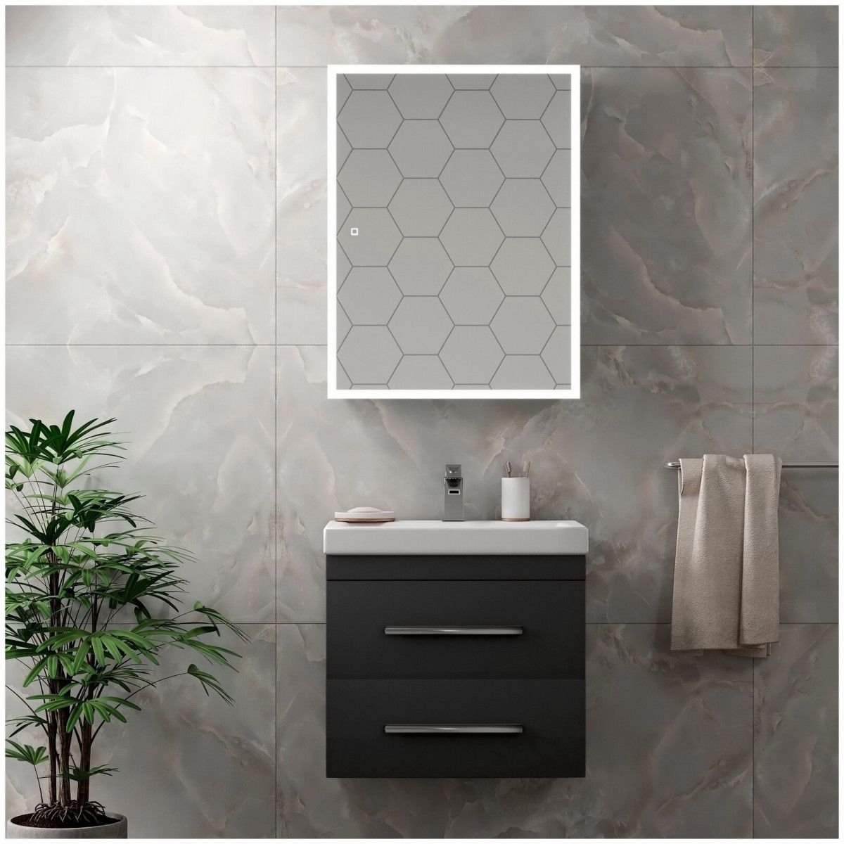 Зеркало-шкаф "Reflex LED" 500х800LED подсветка 6000К; сенсорное включение справа по центру, реверсивные крепления, пластиковый короб, прямые углы на коробе и зеркале, полка/2 шт, без розетки, петли Firmax