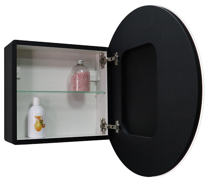 Зеркало-шкаф "Torneo Black LED" d 800 с подсветкойLED подсветка 6000К; сенсорный включатель с функцией димирования, материал корпуса- МДФ, цвет корпуса - черный, реверсивные крепления, розетка на корпусе
