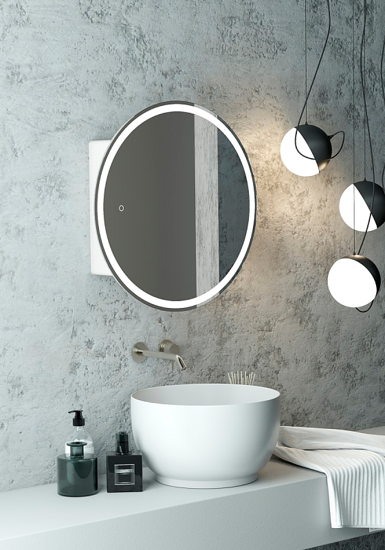 Зеркало-шкаф "Torneo White LED" d 600 с подсветкойLED подсветка 6000К;сенсорный включатель с функцией димирования,материал корпуса- МДФ,цвет корпуса - белый,реверсивные крепления