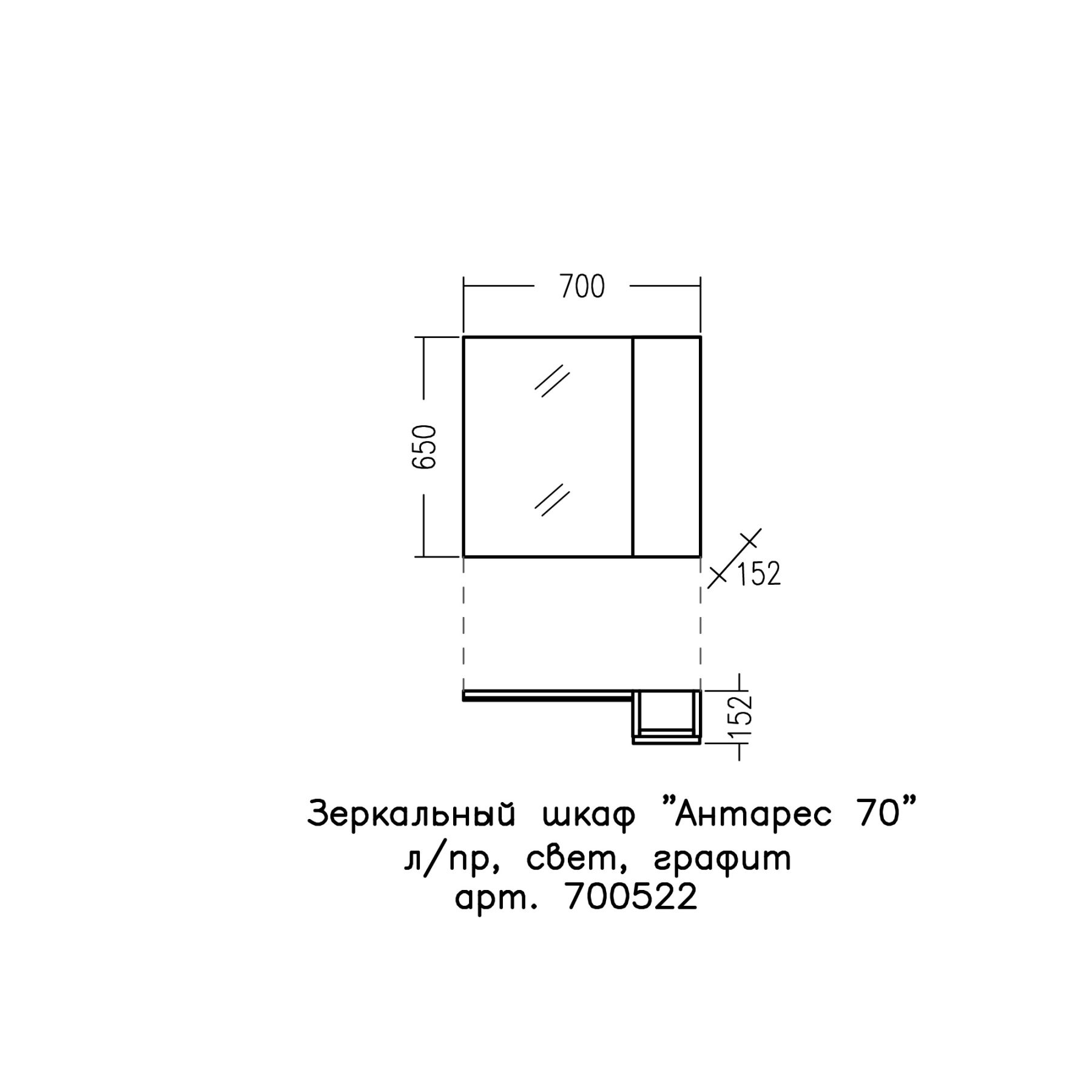 Зеркало-шкаф с подсветкой Санта Антарес 700522 70 см графит матовый купить