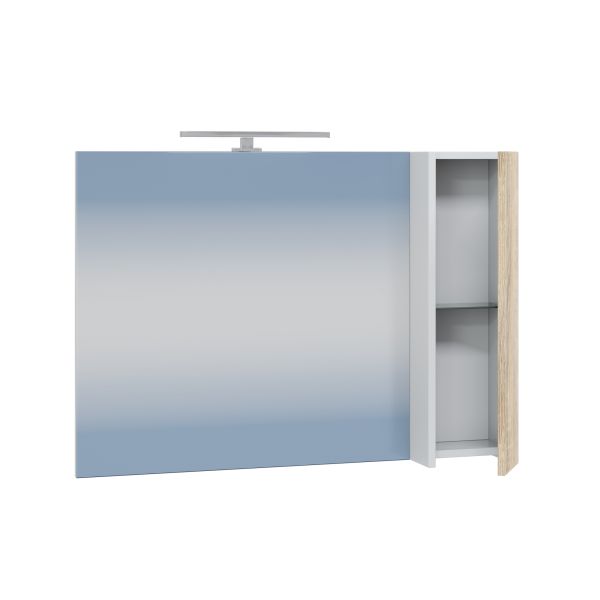Комплектация: петли плавного закрывания, полочки ЛДСП, подвесы, светильник, боковины шкафчика окрашены матовой эмалью