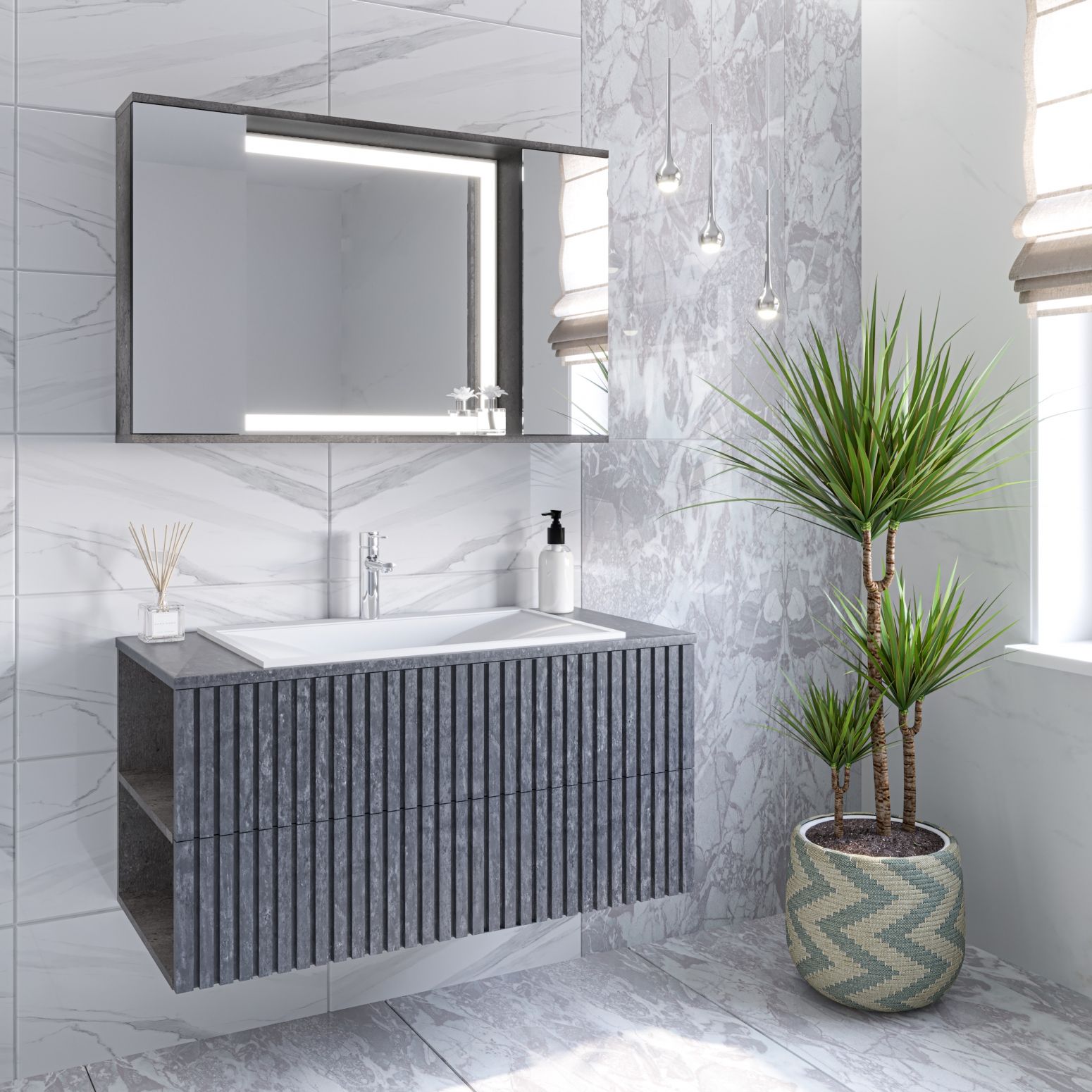 Зеркало-шкаф с подсветкой Stella Polar Дэрри 100см бетон/цемент SP-00001039 купить