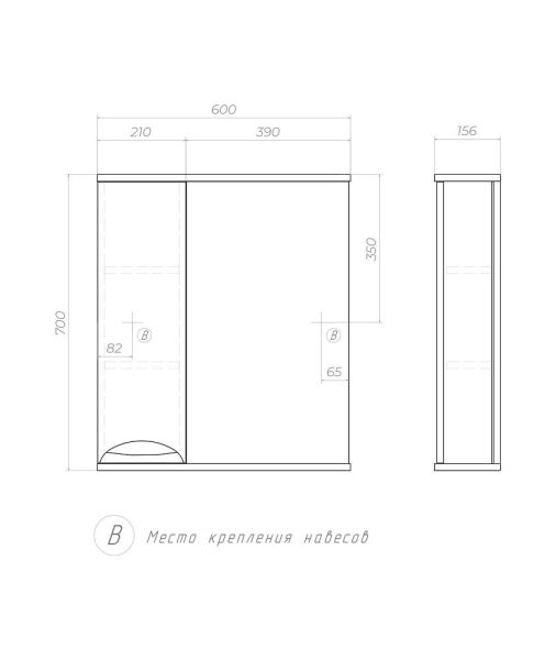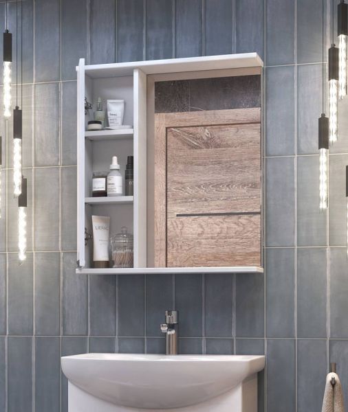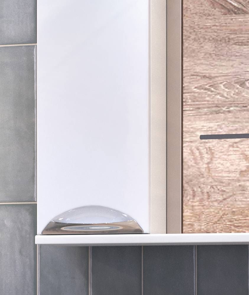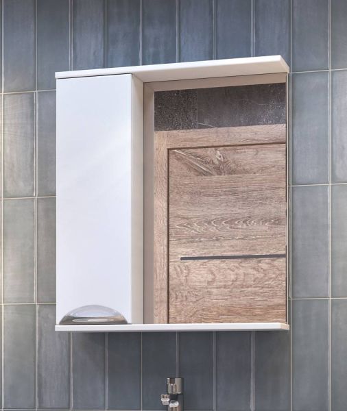 Левое/правое исполнение шкафчика; 1 дверца; 2 полки ЛДСП; ручка металлическая хромированная.Вариант исполнения зеркала с подсветкой z.CAL.60.L.El