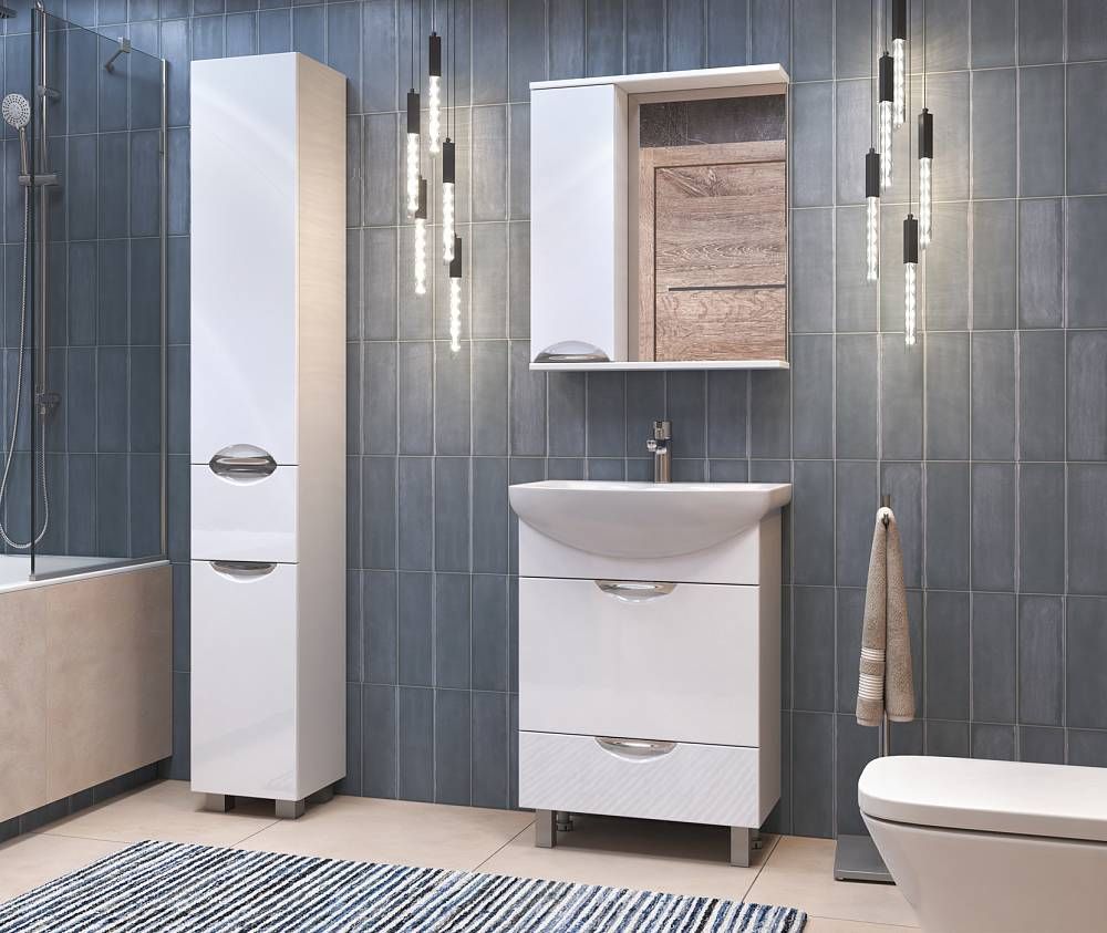 Левое/правое исполнение шкафчика; 1 дверца; 2 полки ЛДСП; ручка металлическая хромированная.Вари... Подробнее