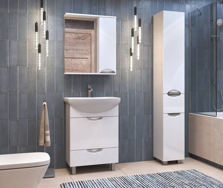 Левое/правое исполнение шкафчика; 1 дверца; 2 полки ЛДСП; ручка металлическая хромированная.Вари... Подробнее