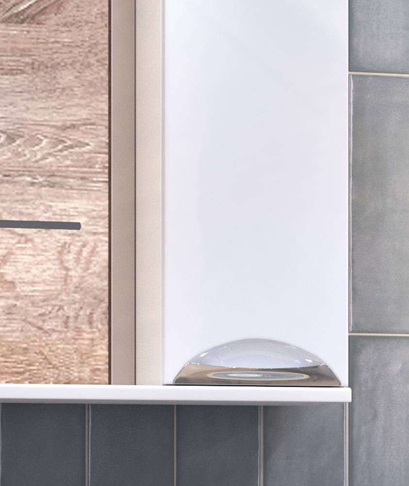 Левое/правое исполнение шкафчика; 1 дверца; 2 полки ЛДСП; ручка металлическая хромированная.Вариант исполнения зеркала с подсветкой z.CAL.60.R.El
